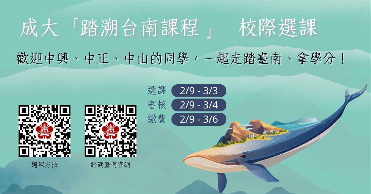 【公告】成大「踏溯台南」課程2/9校際選課開跑囉!